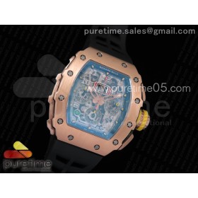 KV 리차드밀 RM011 풀로즈골드 크로노그래프 크리스탈스켈레톤 블랙러버스트랩 RM011 RG Chronograph RG Case Crystal Skeleton Dial on Black Rubber Strap A7750
