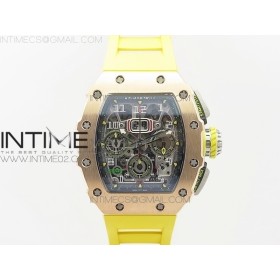 • KU공장 리차드밀 RM011 크로노그래프 로즈골드케이스 크리스탈 스켈레톤다이얼 옐로우러버스트랩 실버크라운 RM011 RG CHRONOGRAPH RG CASE CRYSTAL SKELETON DIAL ON YELLOW RUBBER STRAP A7750 KV공장