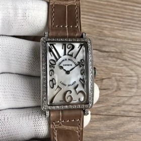 • 프랭크뮬러 롱아일랜드 스틸 다이아몬드케이스 화이트자개다이얼 실버양각인덱스 브라운엘리스트랩