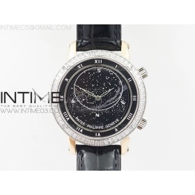 • TW공장 파텍필립 6104P 문 로즈골드금장 블랙다이얼 다이아몬드베젤 가죽스트랩 6104P MOON RG BLACK DIAL DIAMOND BEZEL ON BLACK LEATHER STRAP A240 V2