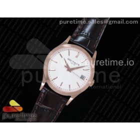 OX공장 파텍필립 칼라트라바 5296G 로즈골드금장 화이트다이얼 가죽스트랩 Calatrava 5296G RG White Dial RG Hand on Brown Leather Strap A324