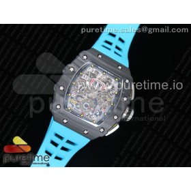 KU공장 리차드밀 RM011 카본케이스 크로노 크리스탈스켈레톤 옐로우다이얼 블루레이싱러버스트랩 RM011 Carbon Case Chrono Crystal Skeleton Yellow Dial on Blue Racing Rubber Strap A7750 KV공장