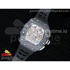 KU공장 리차드밀 RM011 카본케이스 크로노 크리스탈스켈레톤 옐로우다이얼 블랙레이싱러버스트랩 RM011 Carbon Case Chrono Crystal Skeleton Yellow Dial on Black Racing Rubber Strap A7750 KV공장