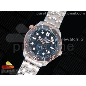 OM공장 오메가 씨마스터 다이버 300M 로즈골드 콤비 블랙물결텍스쳐다이얼 브레이슬릿 2018 Seamaster Diver 300M SS/RG Blue Ceramic Blue Dial on SS/RG Bracelet A8800 (Black Balance Wheel)