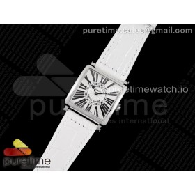 ZF공장 프랭크뮬러 마스터스퀘어 화이트다이얼 가죽스트랩 Master Square SS Ladies ZF 1:1 Best Edition White Black Roman Dial on White Leather Strap Ronda Quartz