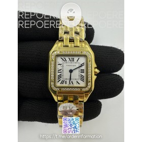 BV공장 까르띠에 팬더 27 옐로우골드금통 다이아몬드베젤 화이트다이얼 브레이슬릿 Panthère 27mm BVF 1:1 Best Edition YG White Dial Diamonds Bezel on YG Bracelet Ronda Quartz