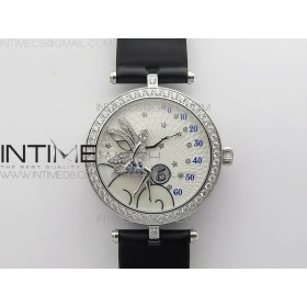 5G공장 반클리프앤아펠 레이디 페어리 풀다이아몬드파베케이스 화이트다이얼 가죽스트랩 Lady Féerie Paved Diamonds Case/Bezel 5G Best Edition White Dial Quartz