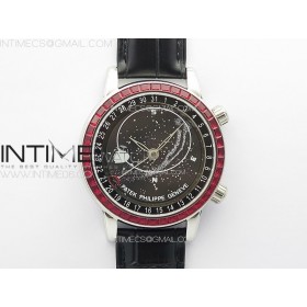 • 3E공장 파텍필립 6104P 문 레드다이아몬드배젤 블랙다이얼 블랙가죽스트랩 6104P Moon SS 3EF Best Edition Black Dial Red T Diamond Bezel on Black Leather Strap A240