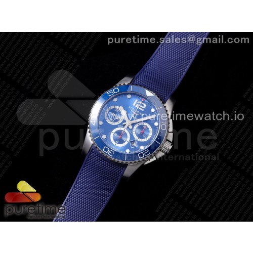 OX공장 하이드로콘퀘스트 크로노 블루다이얼 러버스트랩 HydroConquest Chrono SS Blue Ceramic Bezel Blue Dial on Blue Rubber Strap A7750 > 론진