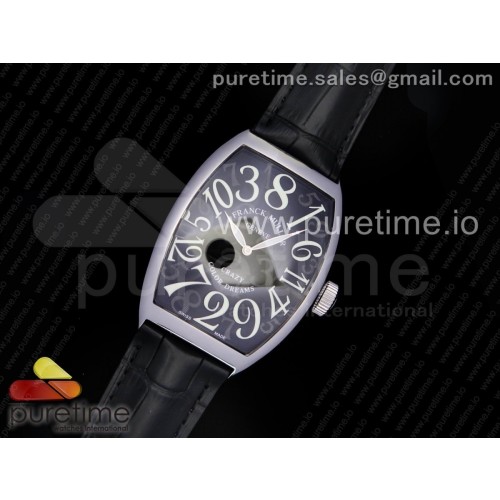 OX공장 프랭크뮬러 크레이지아워 점핑아워무브먼트 스틸 블랙다이얼 화이트마커 가죽스트랩 Crazy Hours Real Jumping Hour SS Black Dial White Markers on Black Leather Strap A23J