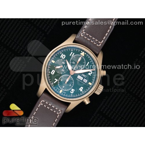 ZF공장 IWC 파일럿 크로노그래프 스핏파이어 브론즈케이스 그린다이얼 가죽스트랩 Pilot Chrono Spitfire IW387902 Bronze Green Dial on Brown Leather Strap A7750 > IWC