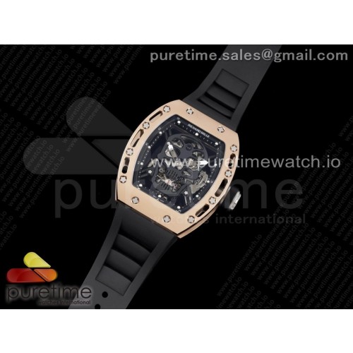 • JB공장 RM052 로골 뚜르비용 러버 RM052 Skull RG Real Tourbillon JBF 1:1 Best Edition Black Skull Dial on Black Rubber Strap