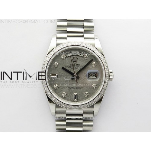 RA공장 롤렉스 데이데이트 36 다이아몬드베젤 운석다이얼 10p인덱스 프레지던트브레이슬릿 Daydate 128238 36mm SS RAF Best Edition Meteorite Dial Crystal Markers on SS President Bracelet A2836