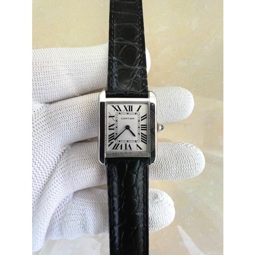 국내배송!! AF공장 까르띠에 탱크솔로 24MM 스틸 화이트다이얼 블랙크로커다일스트랩 (고유번호 w4f4)