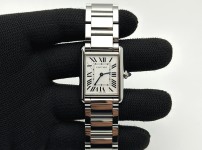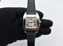 08382440 V6공장 까르띠에 산토스100 미디움 스틸 화이트다이얼 가죽스트랩