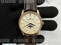 18461158 APS공장 예거르쿨트르 마스터 울트라씬 문페이즈 로즈골드금통 보석베젤 화이트다이얼 브라운가죽…