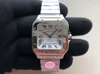 17270956 BV공장 까르띠에 산토스 2018 미디움 스틸 화이트다이얼 스마트링크브레이슬릿