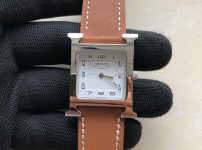 15061938b MK 에르메스 H아워 스틸 화이트다이얼 브라운스트랩