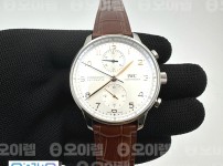 12324986 TW공장 IWC 포르토피노 크로노 스틸 화이트다이얼 블루마커 가죽스트랩
