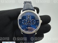 16071390 HR공장 블랑팡 빌레레 콴티엠 퍼페츄얼 6656 스틸 블루다이얼 가죽스트랩