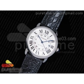 ZF 까르띠에 롱드솔로42 스틸 화이트다이얼 가죽스트랩 Ronde Solo de Cartier 42mm White Dial on SS Bracelet MIYOTA 9015