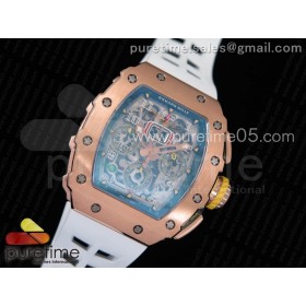 KV 리차드밀 RM011 풀로즈골드 크로노그래프 크리스탈스켈레톤 화이트러버스트랩 RM011 RG Chronograph RG Case Crystal Skeleton Dial on White Rubber Strap A7750