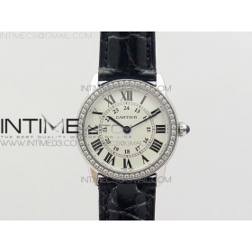 K11공장 까르띠에 롱드솔로 29MM 스틸&다이아케이스 화이트다이얼 가죽스트랩 RONDE SOLO DE CARTIER 29MM SS/DIA WHITE DIAL ON BLACK CROCO LEATHER STRAP RONDA QUARTZ