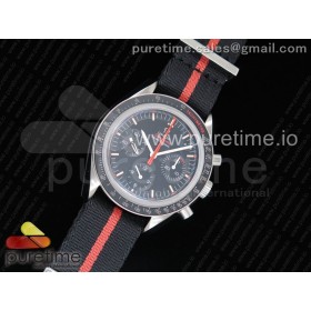 OM공장 오메가 스피디 튜즈데이 울트라맨 스틸 블랙다이얼 나토스트랩 Speedmaster Speedy Tuesday 2 ‘Ultraman’ Nato Strap Manual Winding Chrono Movement