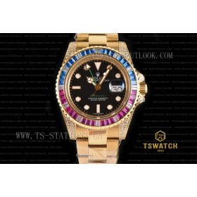 BP공장 롤렉스 GMT마스터2 옐로우골드 금통 바게트다이어 블랙다이얼 브레이슬릿 GMT-Master II 116758 SAru BPF 1:1 Full YG Diamond A2813(Hour Hand Adjust Same Genuine)