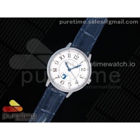 ZF공장 예거르쿨트르 랑데뷰 화이트텍스쳐다이얼 블루가죽스트랩 Rendez-Vous Night & Day SS Polished Bezel White Textured Dial on Blue Leather Strap A898