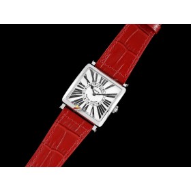 ZF공장 프랭크뮬러 마스터스퀘어 화이트다이얼 가죽스트랩 Master Square SS Ladies ZF 1:1 Best Edition White Black Roman Dial on Red Leather Strap Ronda Quartz