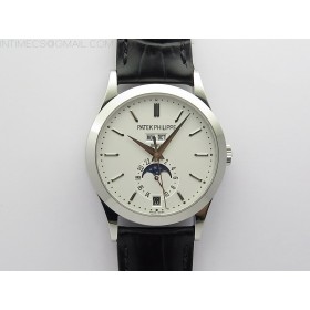GR공장 애뉴얼 캘린더 화이트다이얼 가죽스트랩 Annual Calendar Complications 5396 SS GRF Best Edition White Dial Sticks Markers on Black leather strap A324 > 파텍필립뒤로