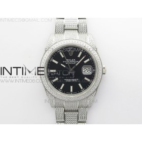 • BP공장 롤렉스 데이저스트 41 다이아몬드풀파베 블랙다이얼 브레이슬릿 DateJust 41 126334 904 Full Paved Diamonds BP Best Edition Black Dial Sticks Markers on Oyster Bracelet A2824