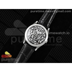 FLF공장 파텍필립 칼라트라바 스틸 블랙다이얼 스타일1 가죽스트랩 Calatrava SS FLF Best Edition Black/Silver Dial Style 1 on Black Leather Strap A240 (Micro Rotor)