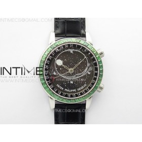 3E공장 파텍필립 6104P 문 그린다이아몬드배젤 블랙다이얼 블랙가죽스트랩 6104P Moon SS 3EF Best Edition Black Dial Green T Diamond Bezel on Black Leather Strap A240 > 파텍필립뒤로