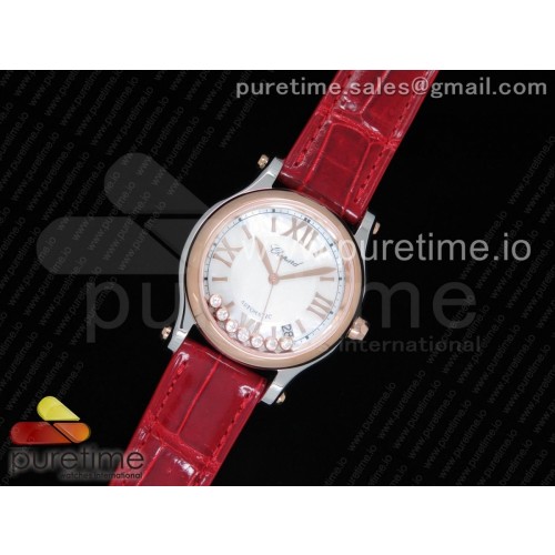 OX공장 쇼파드 해피스포츠 로즈골드콤비 화이트다이얼 레드가죽스트랩 Happy Sport Automatic SS/RG 36mmWhite Dial on Red Leather Strap A2892 > 쇼파드