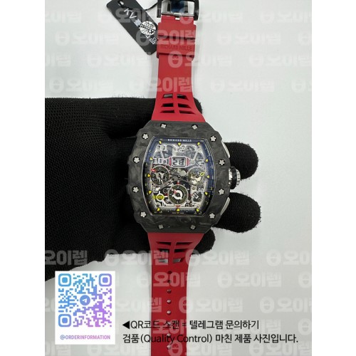 KU공장 리차드밀 RM011 카본케이스 크로노 크리스탈스켈레톤 옐로우다이얼 레드레이싱러버스트랩 RM011 Carbon Case Chrono Crystal Skeleton Yellow Dial on Red Racing Rubber Strap A7750 KV공장 > 리차드밀