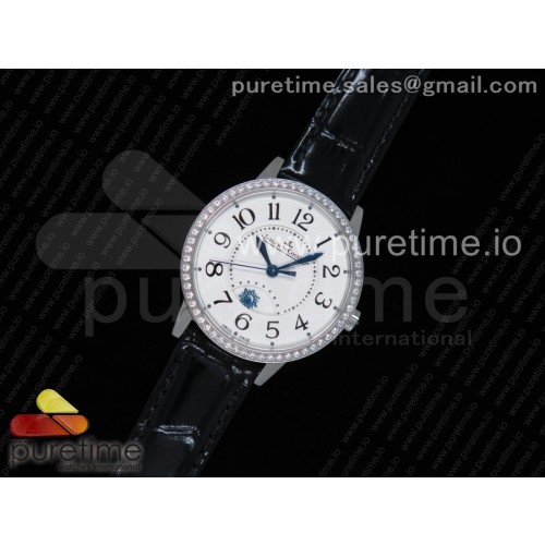 ZF공장 예거르쿨트르 랑데뷰 화이트텍스쳐다이얼 다이어베젤 가죽스트랩 Rendez-Vous Night & Day SS White Textured Dial Diamonds Bezel on Black Leather Strap A898