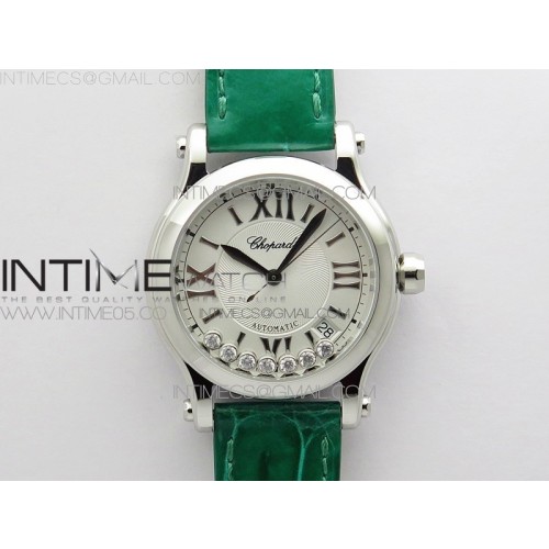 YY공장 쇼파드 해피스포츠 36미리 화이트다이얼 그린가죽스트랩 HAPPY SPORT AUTOMATIC SS 36MM CRYSTAL YYF 1:1 BEST EDITION WHITE DIAL ON GREEN LEATHER STRAP A2892