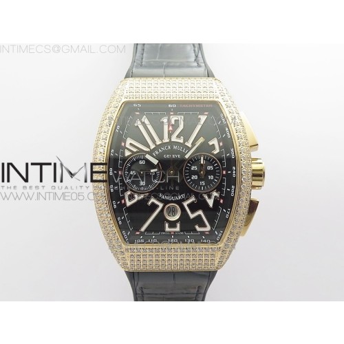 AB공장 뱅가드 로골 블랙다이얼 거미스트랩 Vanguard V45 Chrono RG pave crystals ABF Best Edition Black Dial on Black Gummy Strap A7750 > 프랭크뮬러