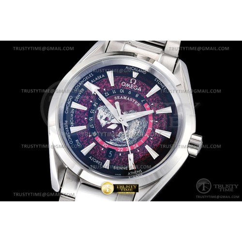 A8공장 오메가 아쿠아테라 150M 43 월드타이머 스틸 퍼플다이얼 브레이슬릿 Aqua Terra 150m GMT Worldtimer 43mm SS/SS A8F A2813