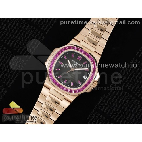 • GR공장 파텍필립 노틸러스 5711 로즈골드금통 퍼플다이아몬드바게트베젤 그레이다이얼 퍼플바게트인덱스 브레이슬릿 Nautilus 5711 RG GRF 1:1 Best Edition Gray Dial Purple Diamonds Bezel on RG Bracelet 324CS