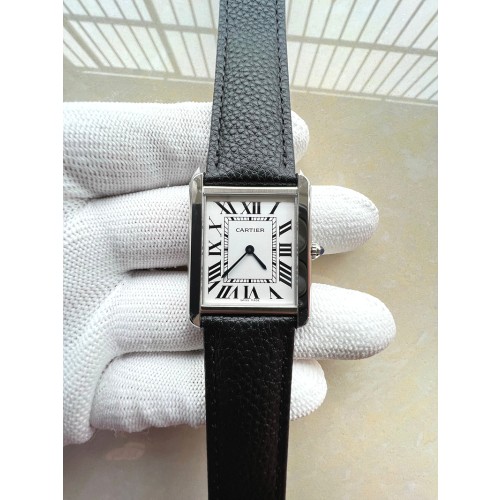 • 국내배송!! AF공장 까르띠에 탱크솔로 27MM 스틸 화이트다이얼 블랙소가죽스트랩 (고유번호 7A186)